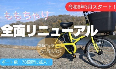 岡山市のレンタルサイクル「ももちゃり」が令和8年に全面リニューアル。