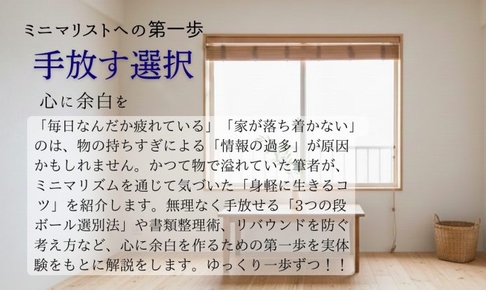 LifeStyle 【ミニマリストへの第一歩】物と情報を手放して、心に余白を作る暮らし方 2026.01.20 labo life 「家の中にいるのに、なぜか疲れが取れない……」 それは、視界に入る物の多さが「情報のノイズ」となり、脳を疲れさせているからかもしれません。ミニマリストとは、単に物を減らす人ではなく、自分にとって本当に大切なものを見極める人。 「いつか使う」を手放し、暮らしに「空白」を作ることで、心にゆとりを取り戻す一歩を踏み出しませんか?