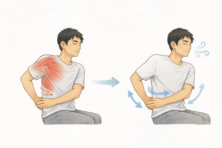 深い呼吸が、筋緊張の低下や可動域の変化と関連する可能性がある