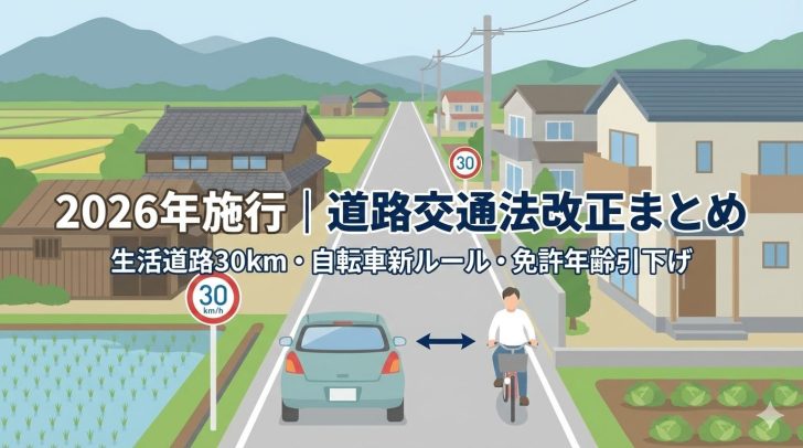 生活道路30km・自転車新ルール・免許年齢引下げを整理しています。